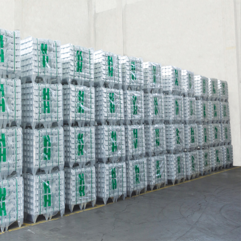 “HHZA”壓鑄鋅合金、鋁合金是由全自動鑄錠機鑄造成形。每條鋅合金、鋁合金上都印有相應的上期、班號和爐號以確保其質量追溯性。客戶在收貨的同時也即時收到一份質量檢定證書(化驗單)以供憑證。